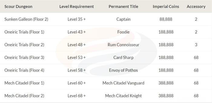 Below you’ll discover the comprehensive list of instances and scour dungeons undergoing reset procedures, along with detailed reward information for each specific encounter: