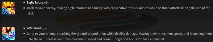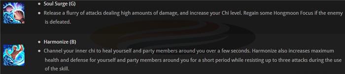- Skills use Hongmoon Focus resource that charges passively and through regular skill usage