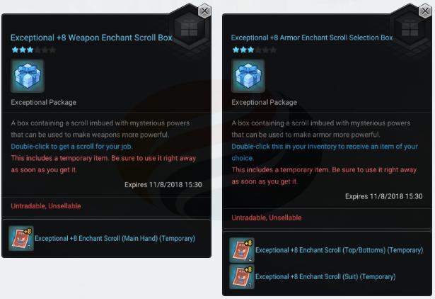 • Weekend Giveaway: Exceptional +8 Weapon Enchant Scroll Box and Exceptional +8 Armor Enchant Scroll Selection Box