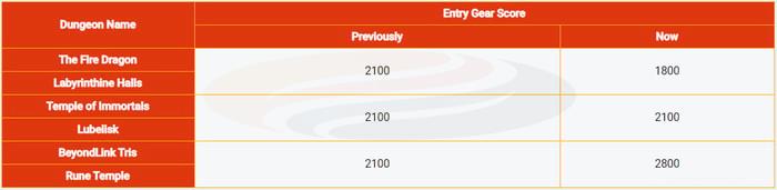 Note: It was deemed that the difficulty and complexity of the BeyondLink Tris and Rune Temple dungeons were already above that of the other dungeons, and would not need to be made more difficult.