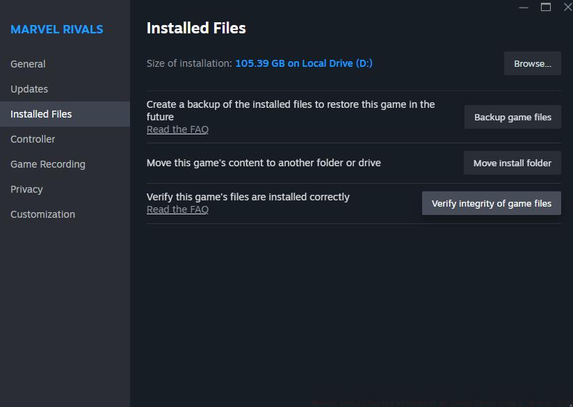 When both Steam and game servers show operational status, proceed to verify your game file integrity through Steam’s built-in validation system. Right-click Marvel Rivals within your Steam Library, navigate to Properties > Installed Files, then select “Verify Integrity of Game Files” to initiate comprehensive file checking. This process typically requires 5-15 minutes depending on your system specifications and may download missing or corrupted files automatically.
