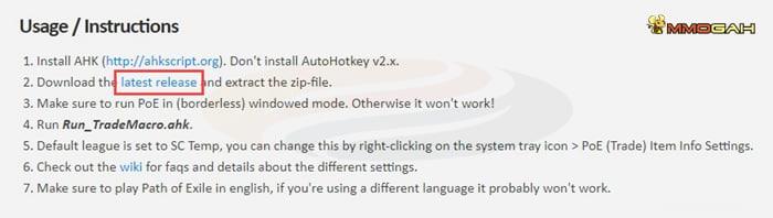 Following successful AutoHotkey implementation, proceed to the designated repository to obtain the most recent iteration of the PoE Trade Macro.