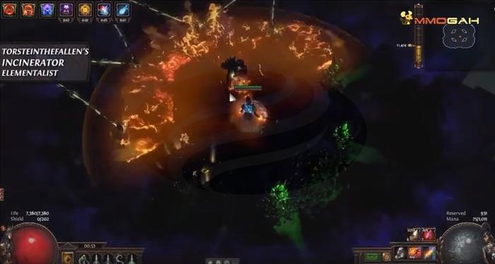 The Incinerator Elementalist represents our premier fire-based channeling build. Incinerate functions as a progressive channeling ability that accumulates through eight distinct stages – the longer you maintain channeling, the more substantial the skill becomes. Upon releasing the channel, you unleash a devastating wave of fire across an expansive area that ignites everything in its trajectory while delivering up to 500% amplified damage. Utilizing the Elementalist ascendancy enhances your direct damage output, expands your area coverage, and provides supplementary Herald enhancements. In the Synthesis update, Incinerate received significant improvements including reduced mana sustain requirements alongside enhanced area effectiveness and elevated damage scaling at higher levels. This configuration can successfully tackle all endgame content while remaining budget-conscious.