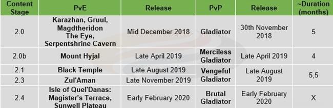 The expansion culminates in early February 2020 with the Isle of Quel’Danas content phase and Brutal Gladiator season, completing the TBC journey for dedicated players.