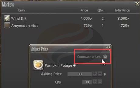 Eliminate unnecessary trips to physical market boards by leveraging your retainer’s built-in price analysis tools. Simply access your retainer menu and select the Compare prices feature to instantly evaluate current market rates across all servers in your data center. This real-time data enables strategic pricing decisions without leaving your current location.